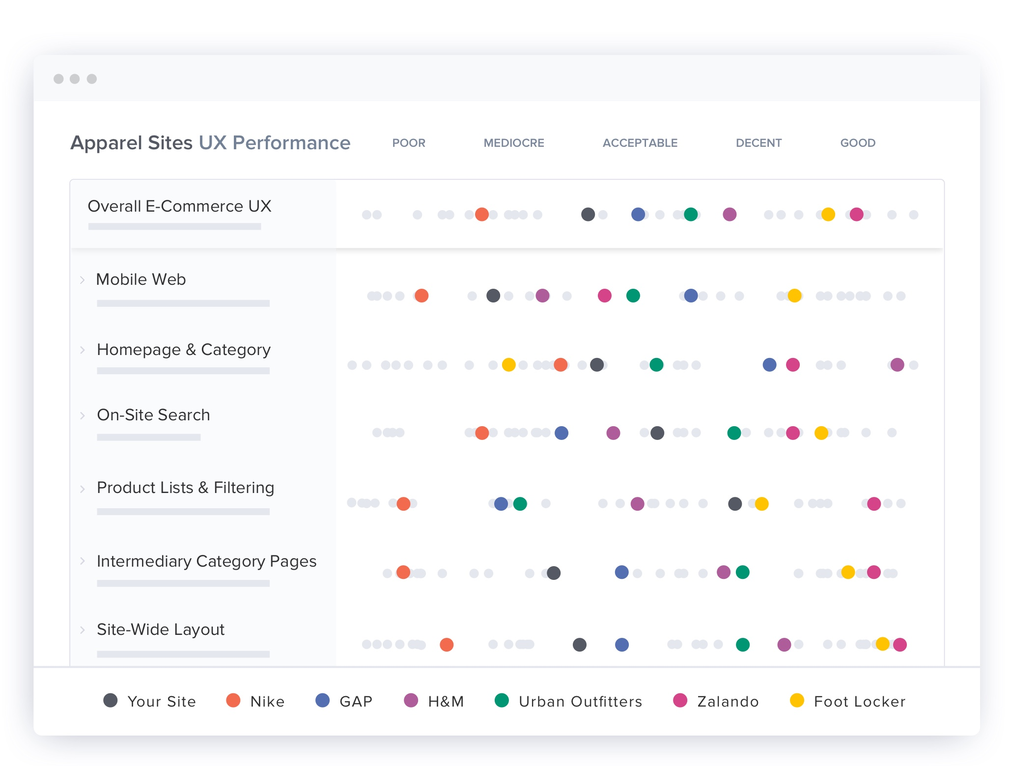 What are the top 40 UX improvements for your Apparel site? How does your UX performance compare to Nike, GAP, H&M, Urban Outfitters, Zalando, or Foot Locker?